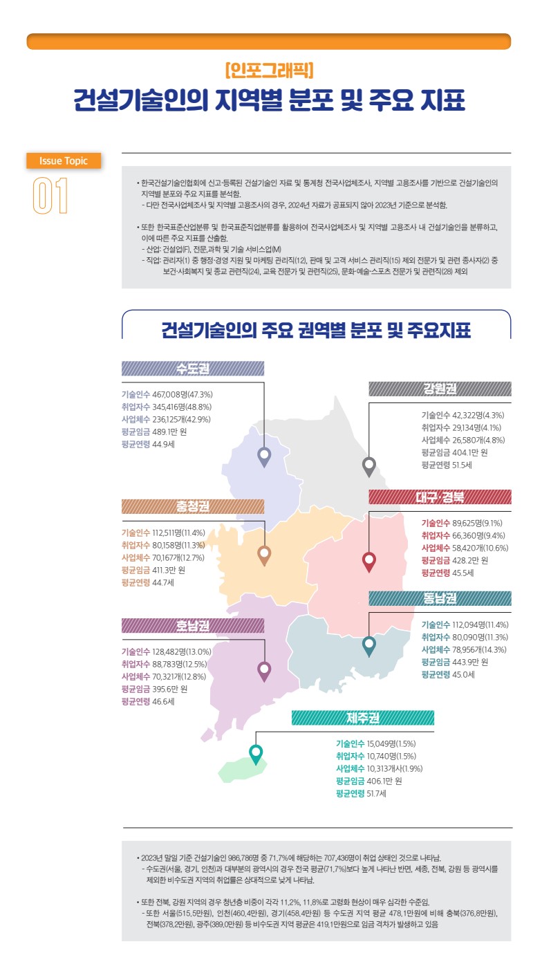 건설산업 및 건설기술인과 관련된 각종 통계, 설문조사, 변화추이 등의 정보를 그래픽으로 나타낸 자료입니다.